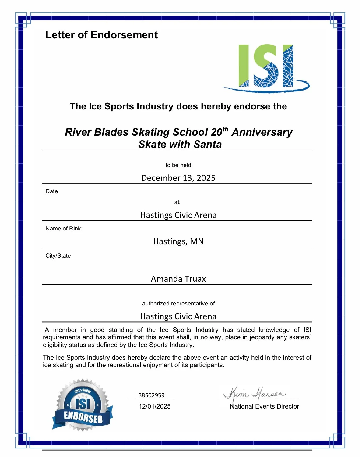 Join River Blades Skating School & Santa at the Hastings Civic Arena for our exciting 20th Anniversary community event to benefit our Hastings food shelf.